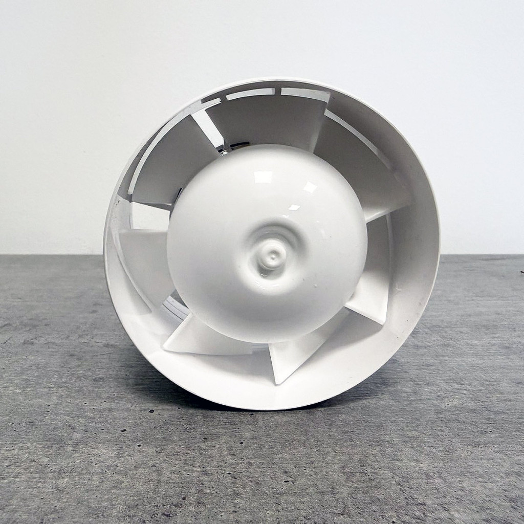 A csőventilátor a légcsatornába épül be, nem a falra. Előlap nélküli kialakítás – teljesen rejtett marad. Ideális álmennyezet mögötti vagy padlástéri szereléshez.