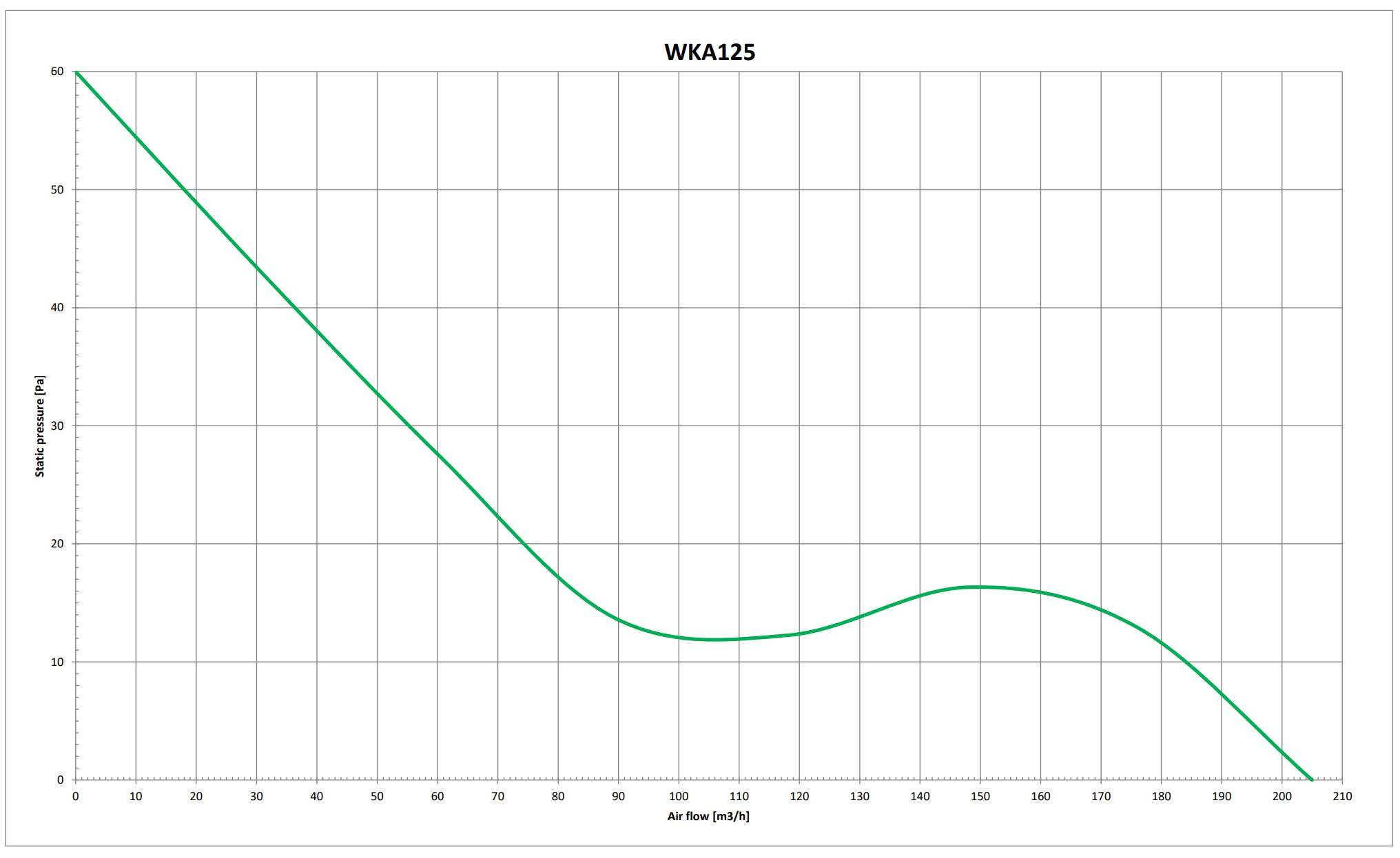 A WKA elszívásra és befúvásra egyaránt használható, vízszintesen és függőlegesen is szerelhető. A ház UV-álló ABS műanyagból készül, IPX4 védettséggel.