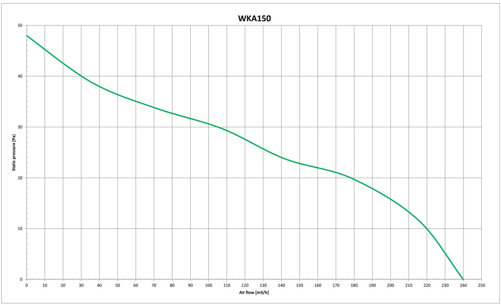 A WKA kifejezetten erős csőventilátor. A 150 mm-es verzió akár 240 m³/h légszállításra is képes.