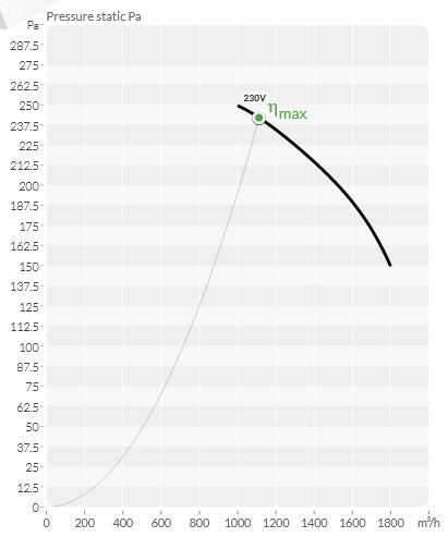 Két oldalt szívó, előrehajló lapátozású, alacsony nyomású radiális ventilátor. A ventilátor járókereke magas minőségű, korrózióálló horganyzott acéllemezből készül aerodinamikailag továbbfejlesztett kivitelben az egyenletes légáramlat céljából, ennek köszönhetően csendes működést biztosít.