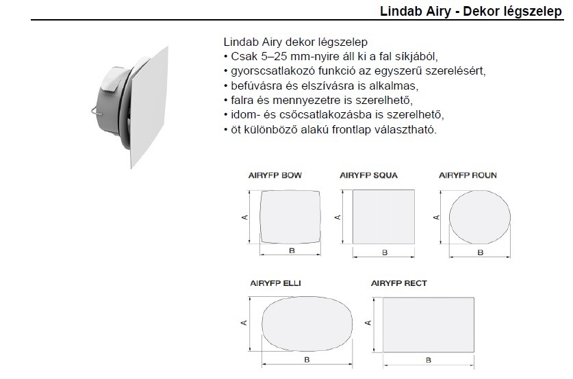 HV AIRY elszívó / befúvó légszelep SQUA frontlappal