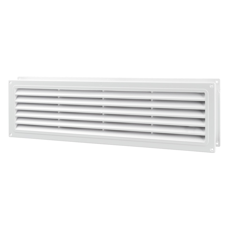 Műanyag takaróelem lakossági, közületi vagy ipari szellőzőrendszerek be- és elszívónyílásainak lezárására. Fehér szín, négyszögletes kialakítás. Csőcsatlakozás nélkül. 453x91 mm. Párban csomagolva.