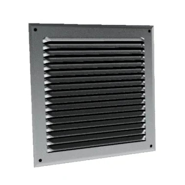 Alumínium, fali, kültéri esővédő rács, levegő beszívásra és kifúvásra szellőző rendszerekben, átlagos 30%-os effektív felülettel.