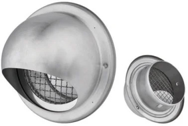 Kör keresztmetszetű, befalazható kültéri esővédő rács, madárvédő hálóval.