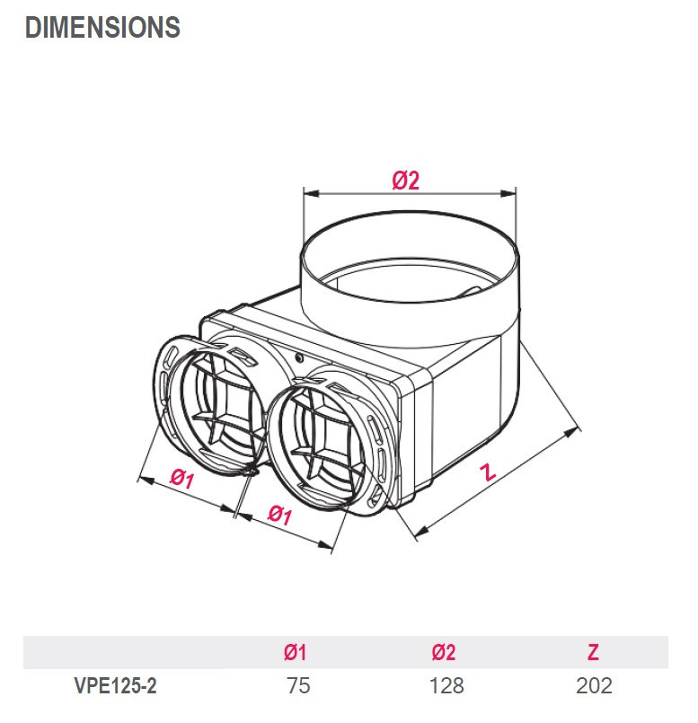 Awenta PRO VPE125-2 antibakteriális műanyag függőleges szelepfogadó 75-mm