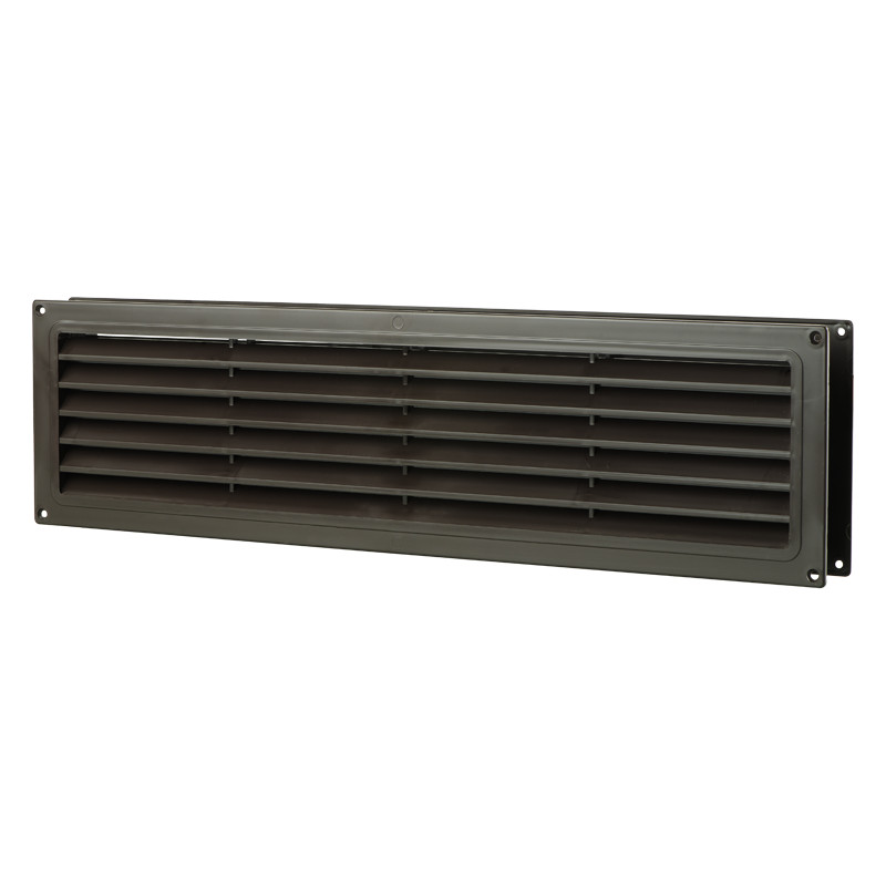 Műanyag takaróelem lakossági, közületi vagy ipari szellőzőrendszerek be- és elszívónyílásainak lezárására. Barna szín, négyszögletes kialakítás. Csőcsatlakozás nélkül. 462x124 mm. Párban csomagolva.