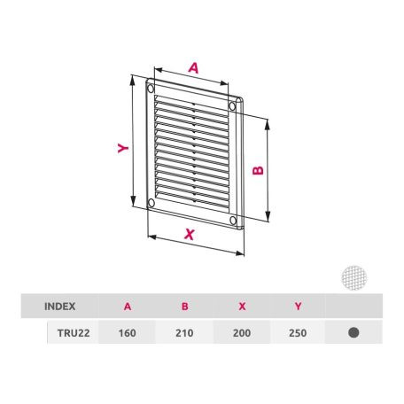 TRU22 téglalap alakú fali rács 200X250 mm, rovarhálóval, fehér színben