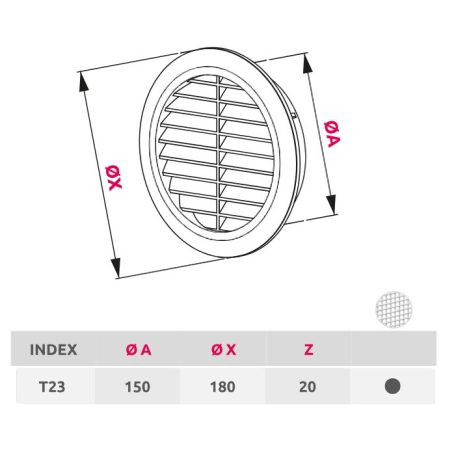 Awenta T23 kerek fali rács, rovarhálóval, fehér színben NA150
