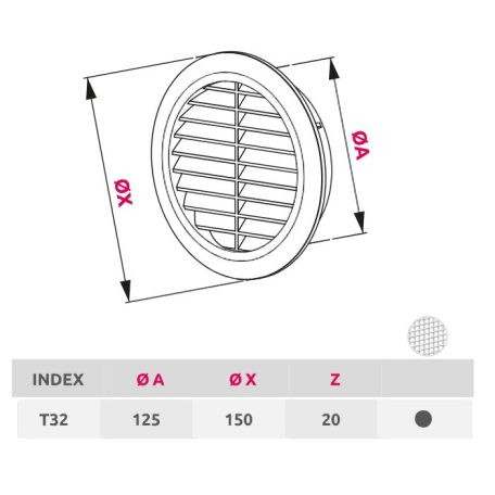 Awenta T32GR kerek fali rács, rovarhálóval, grafit színben NA125