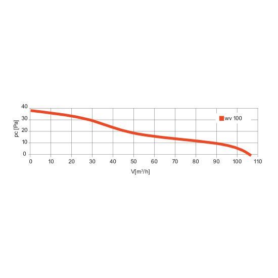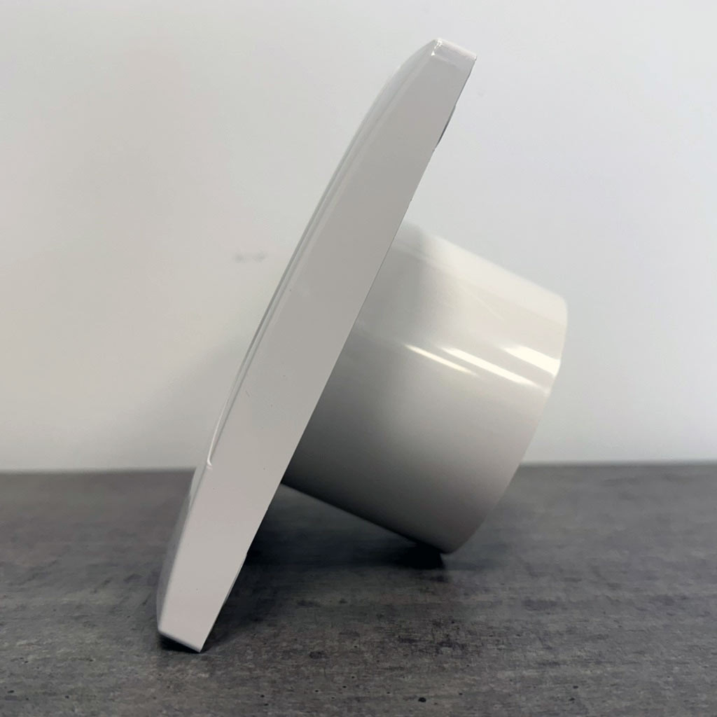 The Vecco comes exclusively in a 100 mm duct diameter. This is perfectly adequate for smaller bathrooms (6–8 m²).