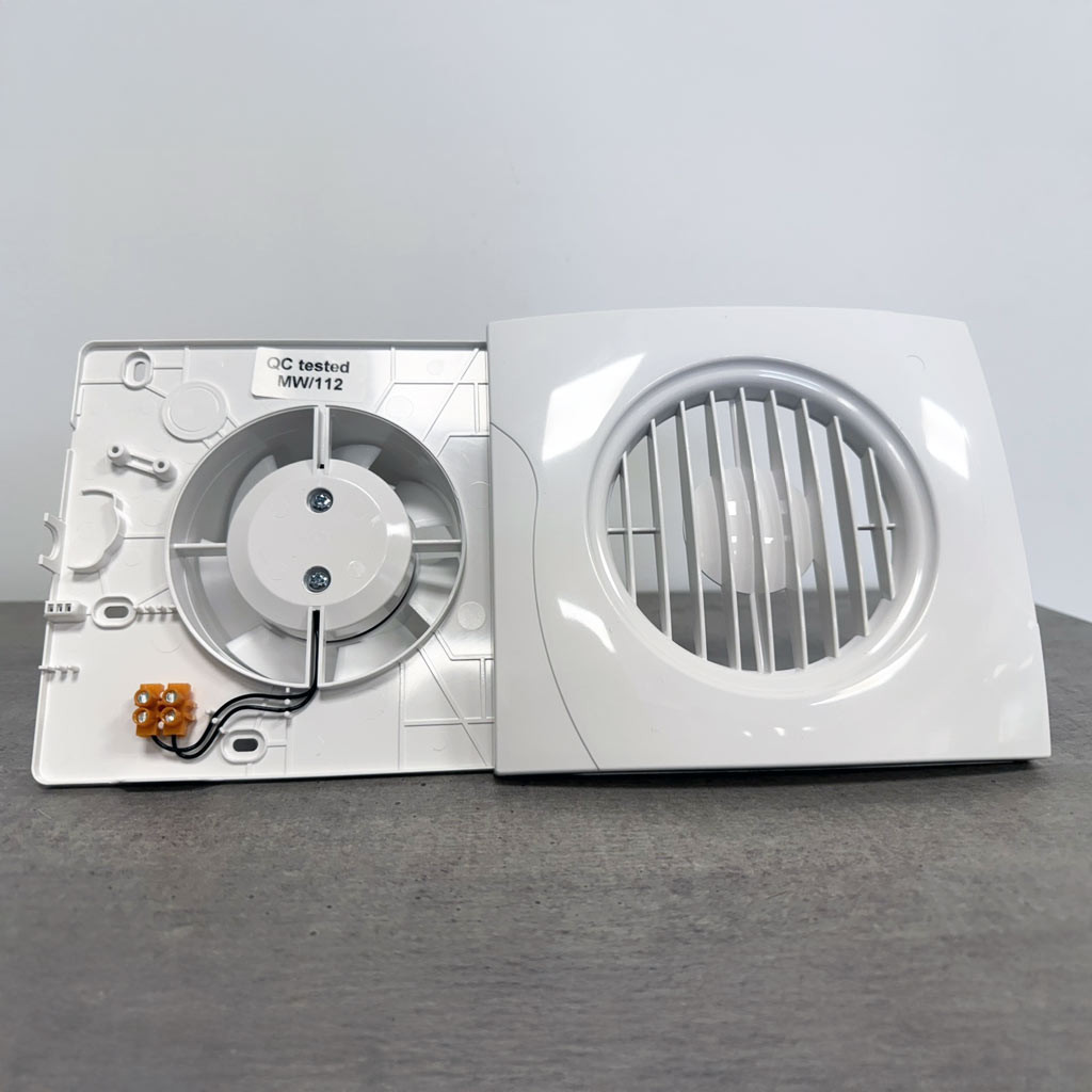 The Vecco is only available with a 100 mm duct diameter and comes in three versions: standard (switch-operated), pull-cord, or timer model.