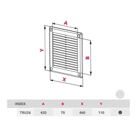 TRU26 téglalap alakú fali rács 460X110, rovarhálóval, barna színben